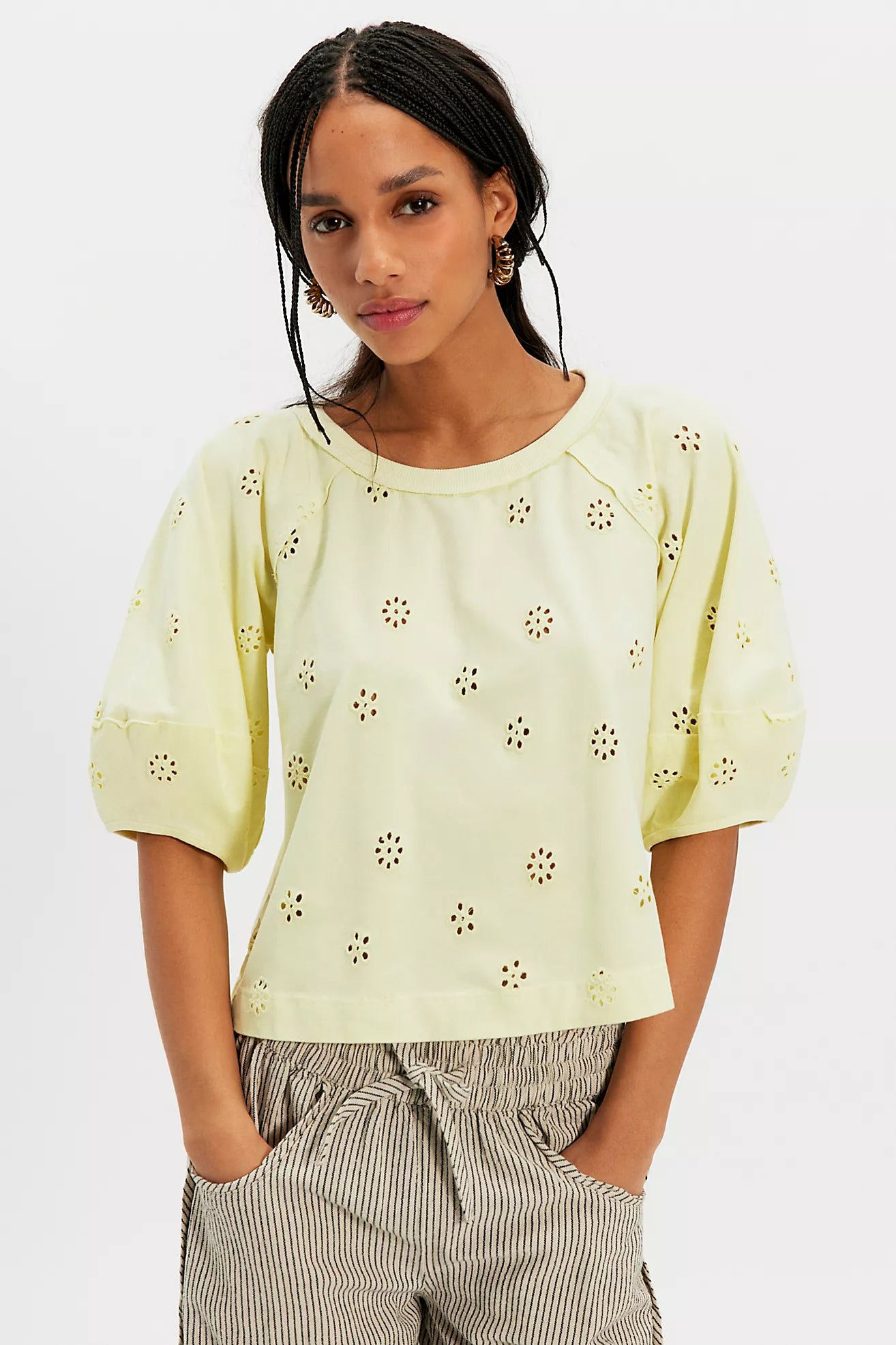 Free People Jessie Eyelet Tee Lemon Water Combo Free People Jessie Eyelet Tee Lemon Water Combo