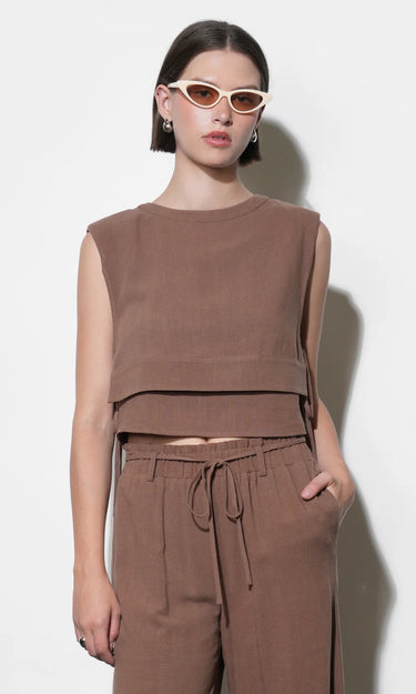 Greylin Luna Double Layer Side Tie Top Brown