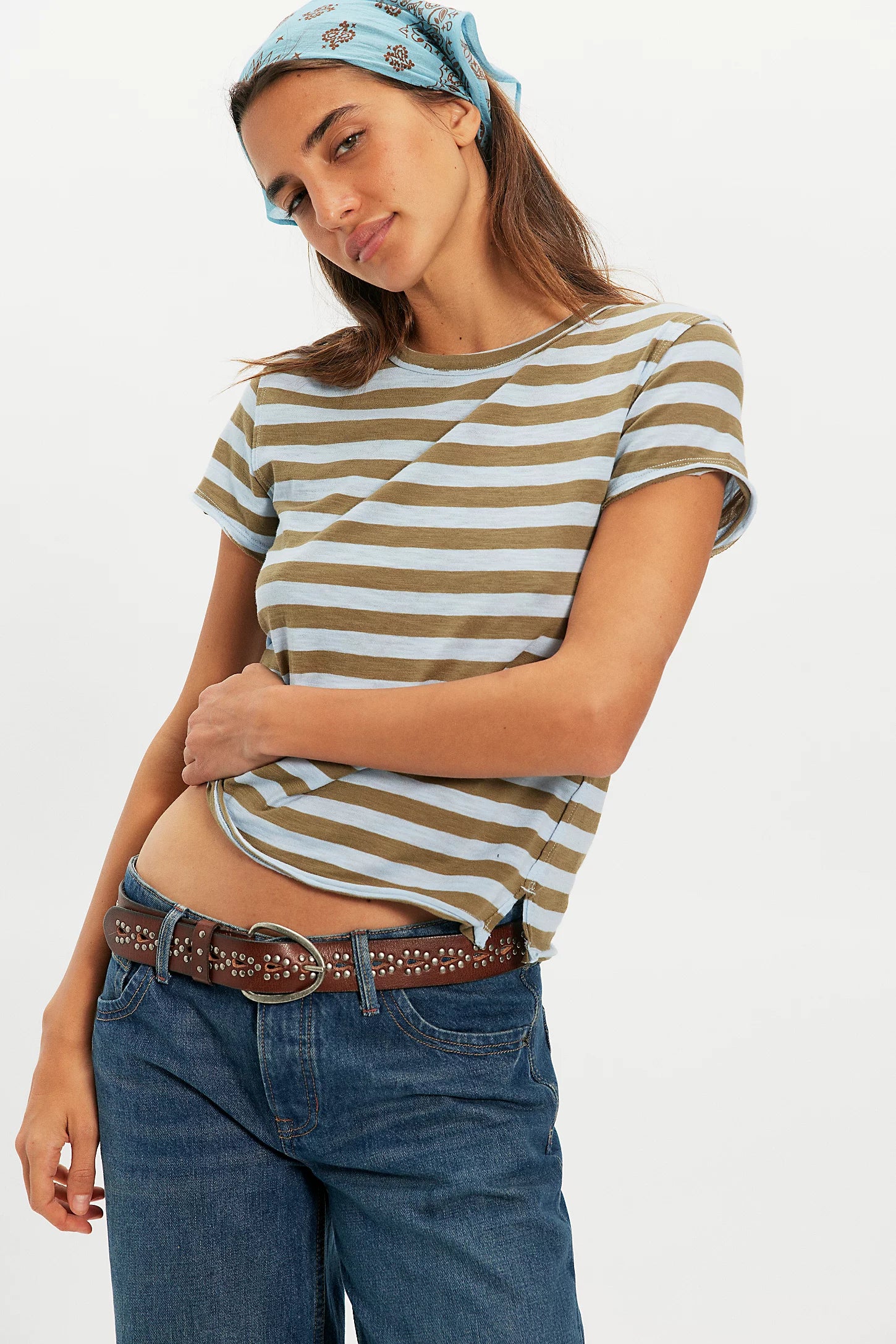 Free People We The Free Nora Striped Tee  Green Combo Free People We The Free Nora Striped Tee Green Combo